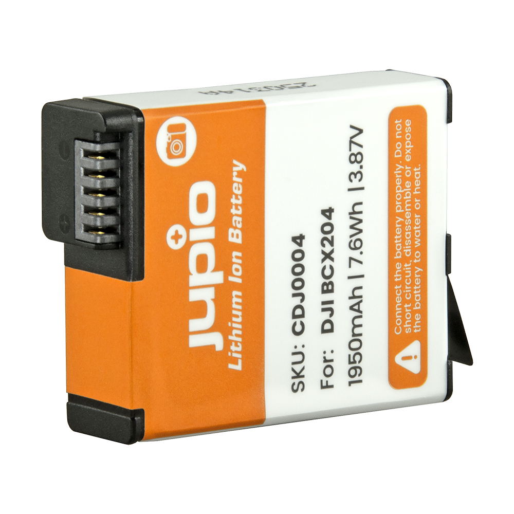 The Jupio CDJ0004 battery is the equivalent of the DJI BCX204 battery and can be used in the DJI Osmo Action 3, Action 4 and Action 5 Pro. The battery has a capacity of 1950mAh (7,6Wh) and a voltage of 3,85V. Thanks to the thoroughly tested high quality li-ion battery cell, you can capture all your outdoor adventures.